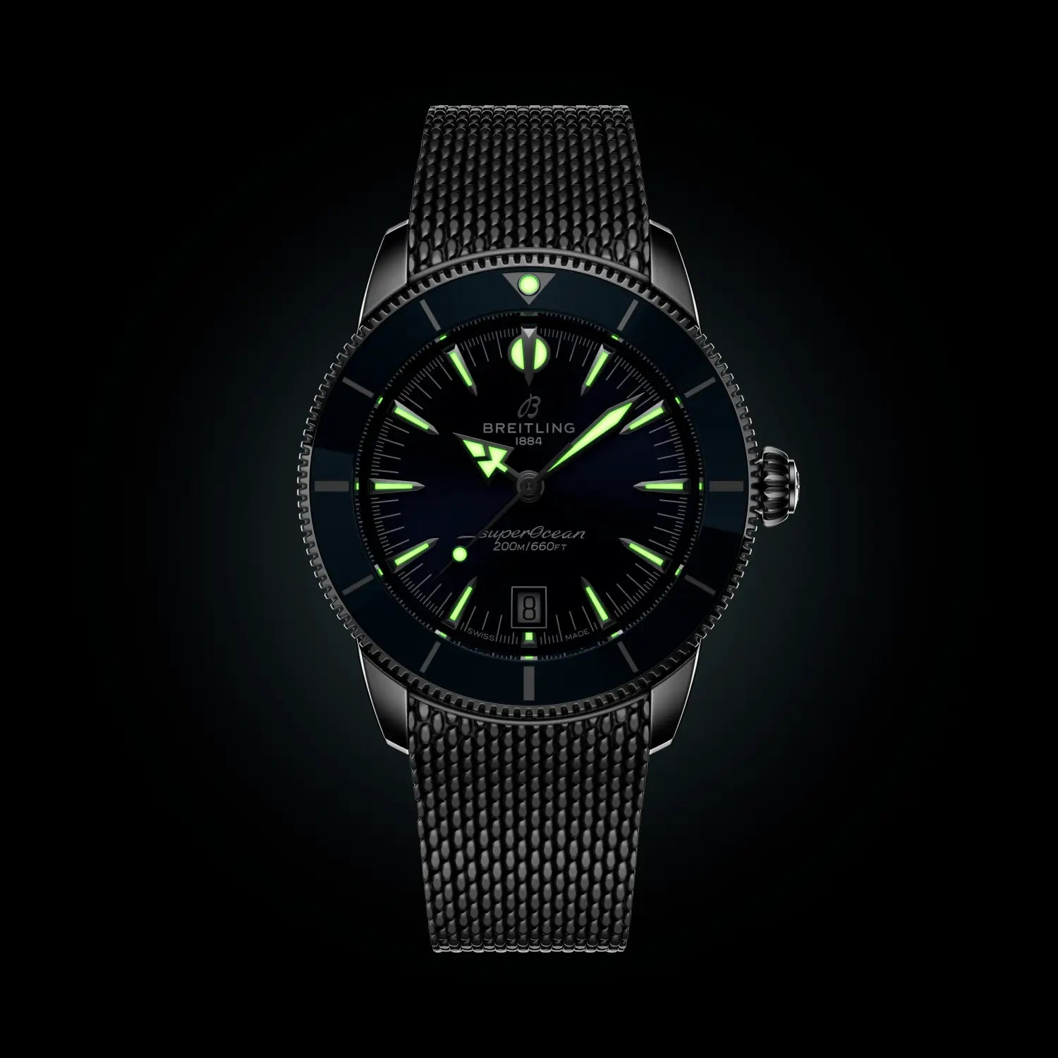 波間も、ウォーターフロントも、自在に駆ける。 スーパーオーシャン ヘリテージは、ただのダイバーズウォッチではありません。最初からそうでした。ブライトリングがこのモデルを初めて発表したのは1957年。当時の他のダイバーズウォッチとは一線を画すアプローチをとっていました。Ref. 1004(洗練された3針モデル)とRef. 807(世界初の本格的なダイバーズ・クロノグラフ)は、単に水中探検のためのツールではなく、スタイルも重視したデザインでした。特徴的な槍と矢の形をした針、アノダイズ処理を施した回転ベゼル、そして自然な美しさを備えた洗練されたプロポーションが、海とスタイルを愛する冒険家たちを魅了しました。その哲学は、スーパーオーシャン ヘリテージにしっかりと受け継がれてきました。1950年代の精神を宿しながら、今の時代に合わせて磨き上げられました。 最新のSuperocean Heritageは、オリジナルの特徴をすべて踏襲し、さらに洗練されています。このコレクションには、ブライトリング初の自社製3針ムーブメント「キャリバーB31」が搭載されています。セラミックインレイのベゼルは優れた耐傷性を提供し、一体型のメッシュメタルまたはメッシュラバーブレスレットはケースにぴったりとフィットし、折りたたみ式クラスプでしっかりと固定され、すっきりとした防水仕上げを実現します。6時位置に控えめな日付表示窓と、オリジナルのシグネチャー針(時間を示す矢印、分を示す槍)が、表面の上でも下でも、視認性とバランスを確保します。