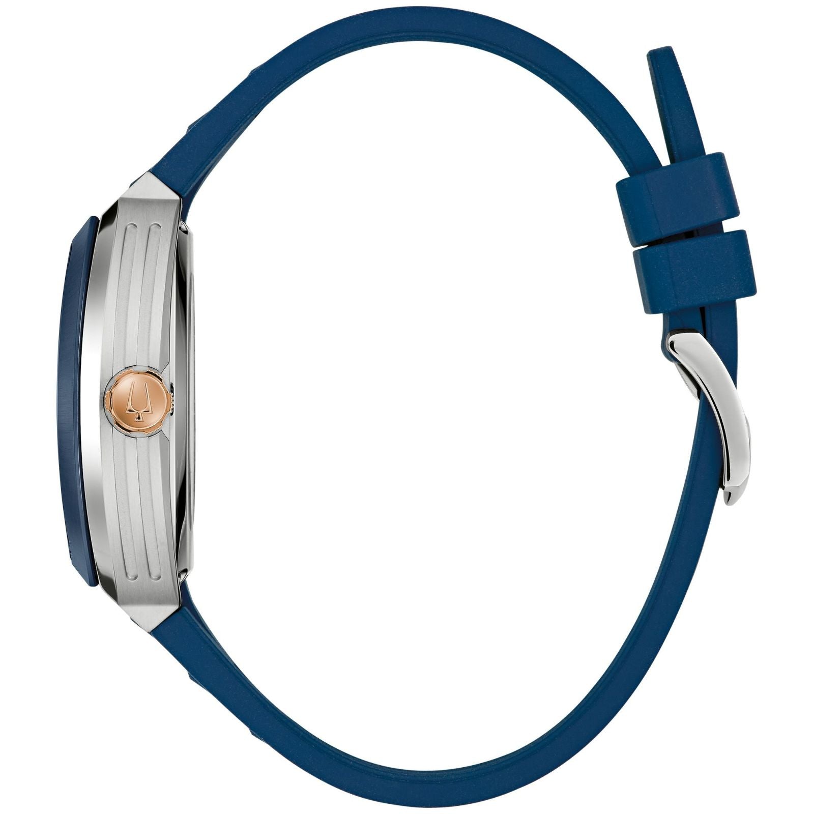個性ある大人な雰囲気が際立つクラシックコレクションのスケルトン文字盤のトノーケースモデル。ブリッジにはサンレイ装飾を施し、ムーブメントパーツ仕上げにもこだわりました。ガラスとケースは緩やかにカーブ、ケースはヘアラインを施すことで、文字盤の大胆さをより際立つメリハリの効いたデザインです。文字盤やベゼルに合わせたネイビーのラバーストラップが大人らしいモダンスポーティーウォッチです。