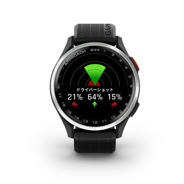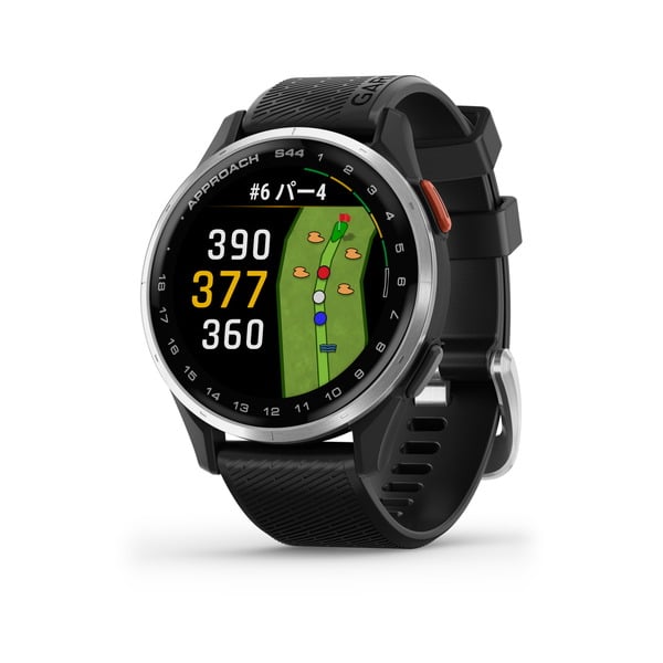 Approach S44は、ゴルフのラウンドではスコアアップに役立ち、スタイリッシュなデザインで日常シーンでも使えるゴルフGPSウォッチのスタンダードモデルです。